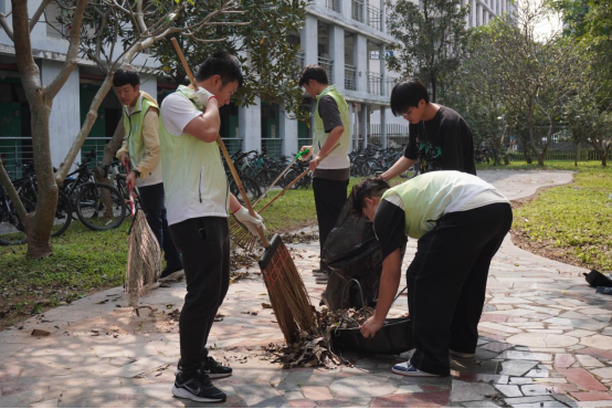 下午两点半,同学们身着统一的志愿马甲,便已在指定地点准时集结。大家精神抖擞、热情昂扬,车老师和志愿站负责人对本次劳动教育的具体要求进行讲解后,同学们迅速明确分工、认领各自任务,手持扫帚、垃圾袋、垃圾夹等清洁工具,有序奔赴莞华、莞逸社区的责任区域,正式拉开了本次校园美化行动的序幕。